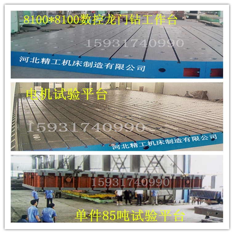 我公司根據(jù)客戶不同需求,生產(chǎn)了不同用途的鑄鐵平臺(tái)。有用于工件焊接檢測(cè)用的焊接平板、鉚焊平板、三坐標(biāo)平臺(tái);有用于零件劃線研磨加工用的劃線平板、研磨平板、刮研平板;有用于設(shè)備安裝調(diào)配用的裝配平板、基礎(chǔ)平板、T型槽平板、鉗工平板、火工平板;有用于檢驗(yàn)工作精密測(cè)量基準(zhǔn)的檢驗(yàn)平板、圓形平板、試驗(yàn)平板、電機(jī)試驗(yàn)平臺(tái);有用于機(jī)床加工用的落地鏜床工作臺(tái)、落地銑床工作臺(tái)、水槽工作臺(tái)等等。